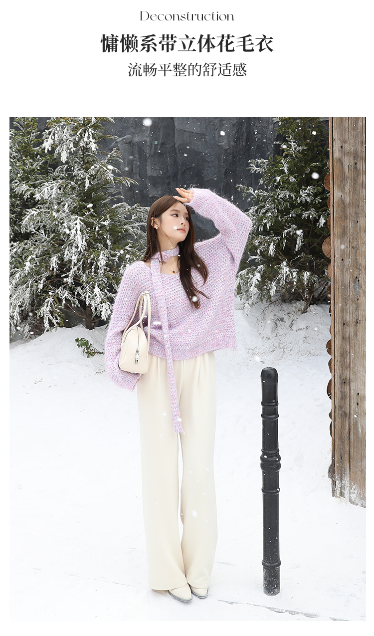OR.Kart慵懒系带立体花毛衣轻文艺(神秘探险家)