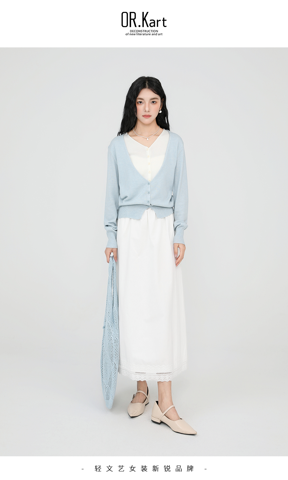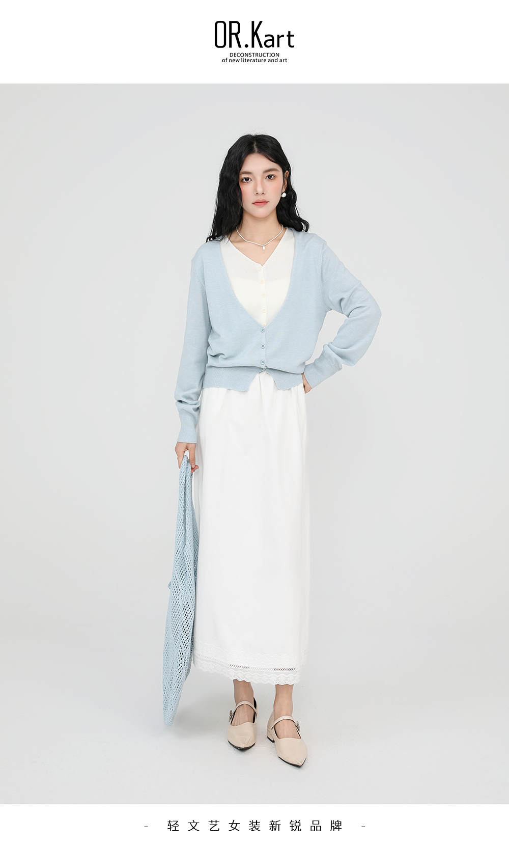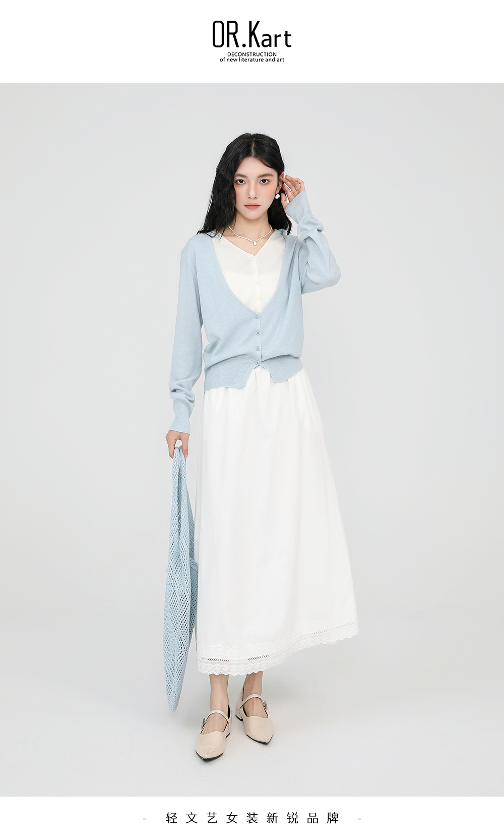 OR.Kart珍珠项链立体花上衣轻文艺(......